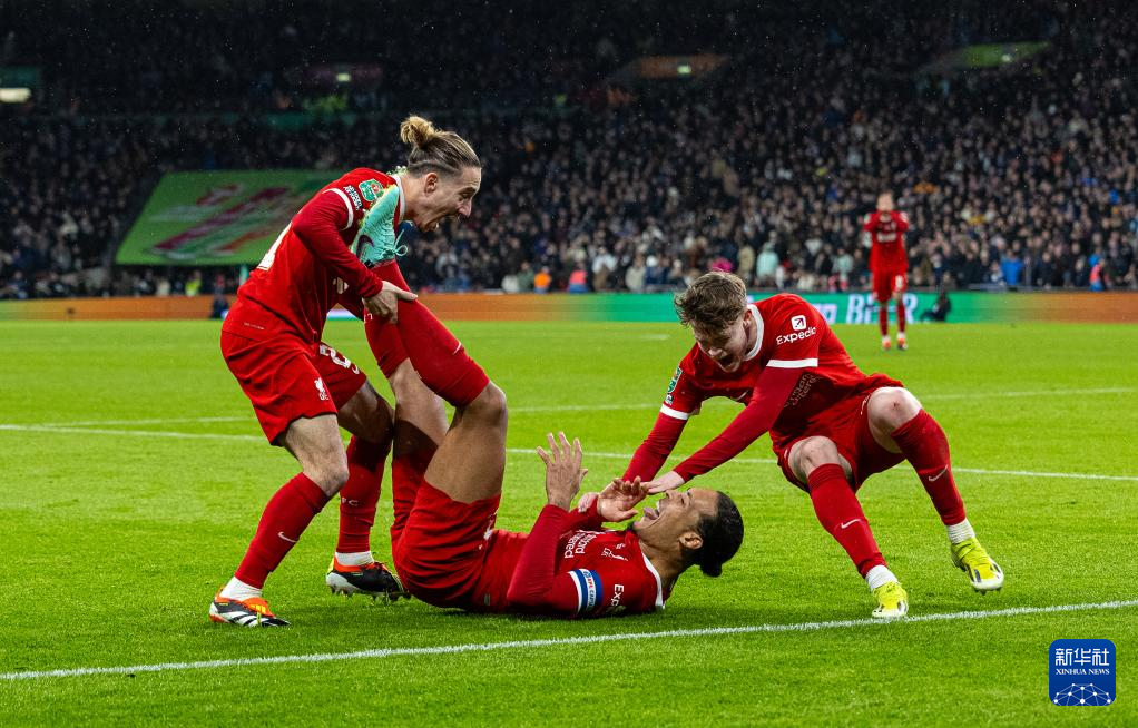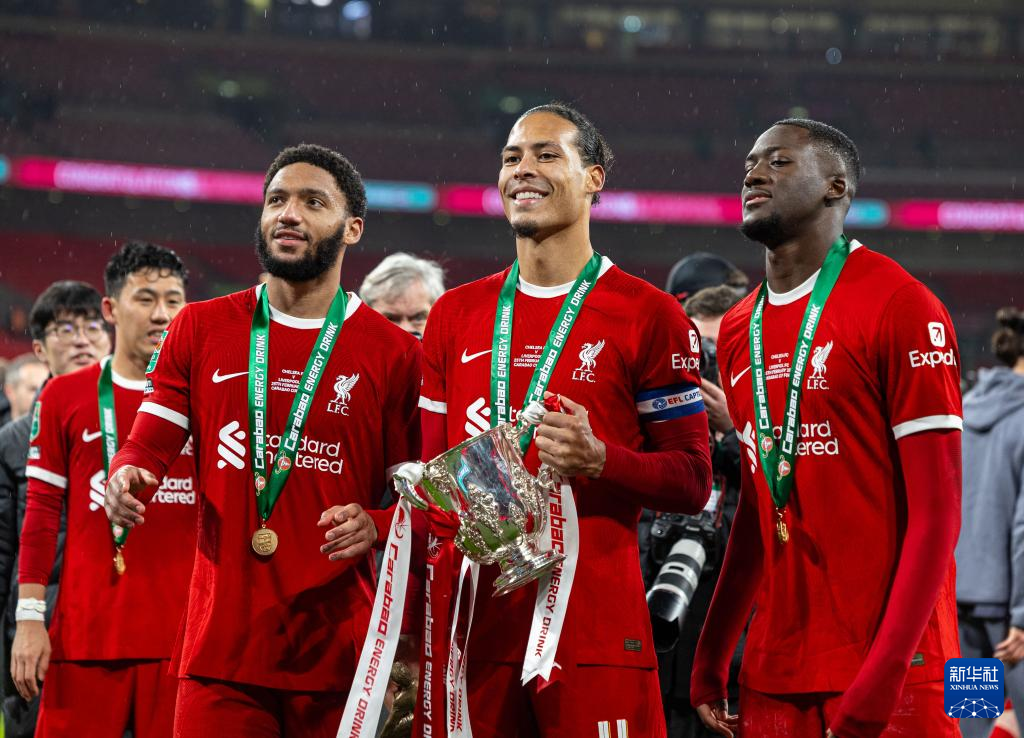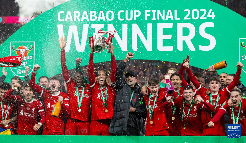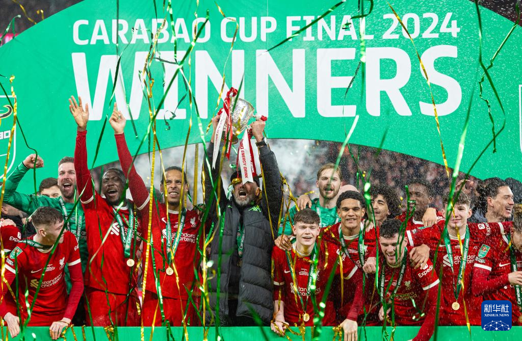 当日,在2023-2024赛季英格兰联赛杯决赛中,利物浦队1比0战胜切尔西队,夺得冠军。