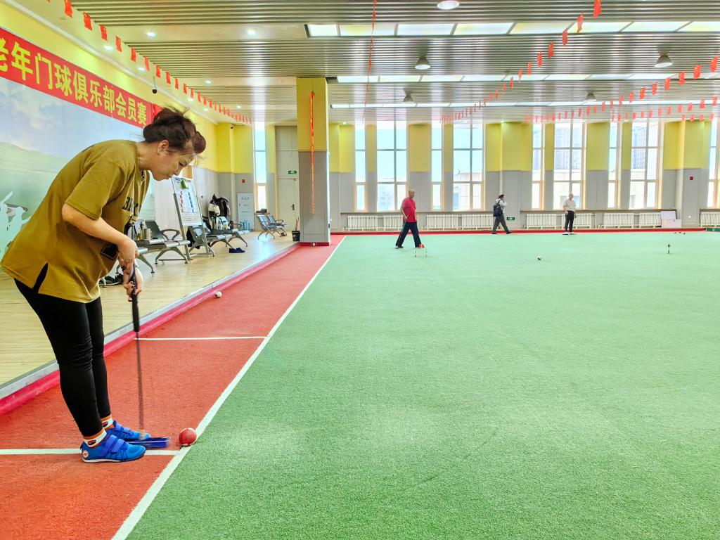 在室内门球场,市老体协门球工作委员会主任陈家涛,正手把手指导一名新手如何发球。他动作精准,解释清晰。“门球运动量适中、无冲撞,可健身益脑,喜欢门球的老年人越来越多,打球水平也越来越高。”陈家涛说,“在2023年自治区第四届老年人运动会中,我们组织、培训、选派的队员夺得门球第三名。”
