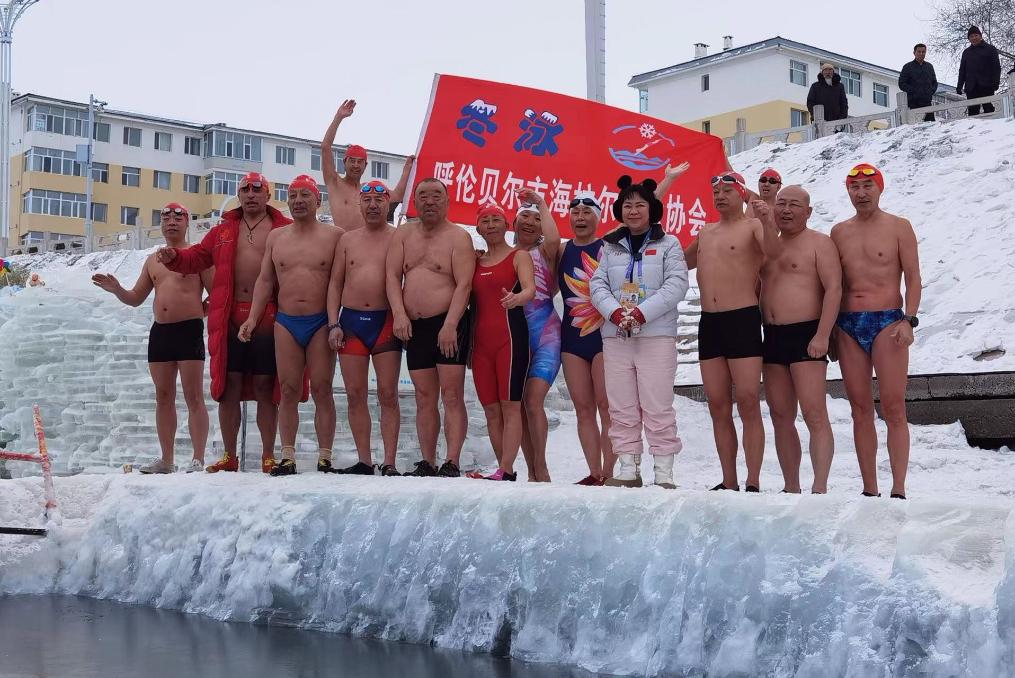 新华社呼和浩特2月26日电(于嘉、闫玉海)近几天,“十四冬”举办地之一的内蒙古呼伦贝尔市海拉尔区寒气袭人、呵气成冰。25日上午,穿城而过的伊敏河畔,61岁的闫相斌和9名年龄相仿的伙伴们一如平常,将河中央冬泳池内的浮冰凿开、清理后,依次纵身跃入池内。