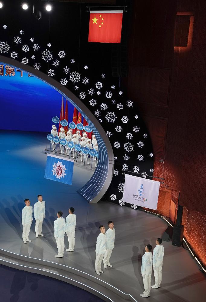 冰雪相约,同心筑梦。27日20时许,“十四冬”闭幕式在呼伦贝尔大剧院开始。在欢快热烈的气氛中,各参赛代表团旗帜入场。全体起立,奏唱中华人民共和国国歌。