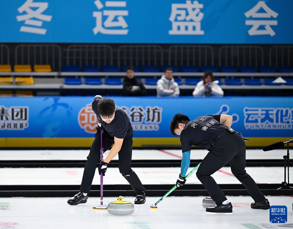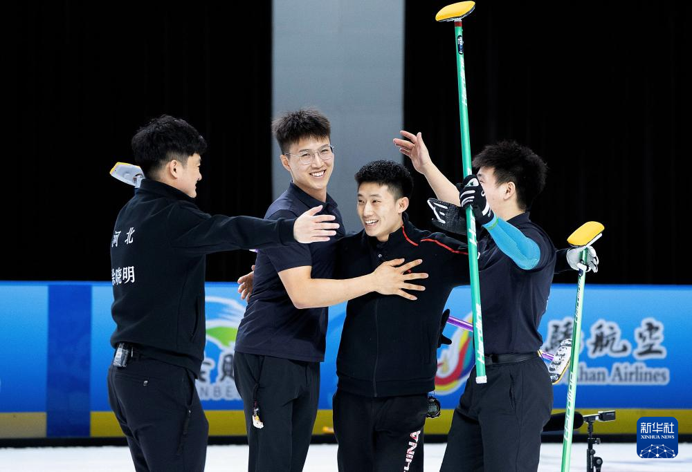 当日,在第十四届全国冬季运动会冰壶项目公开组男子金牌赛中,河北队5比4战胜福建队,夺得冠军。