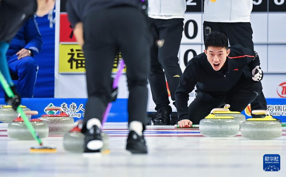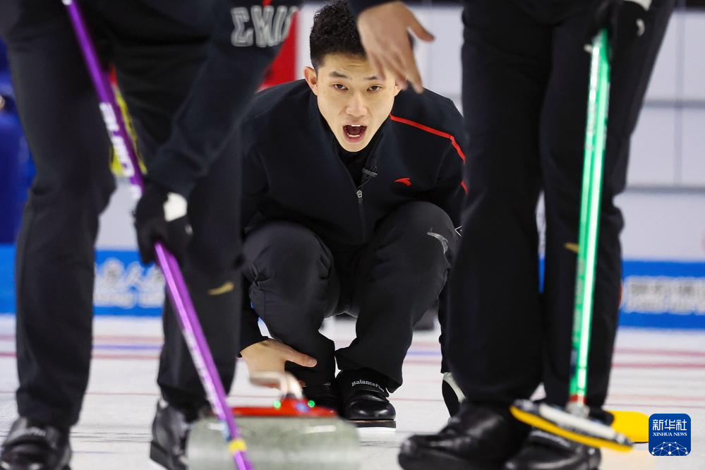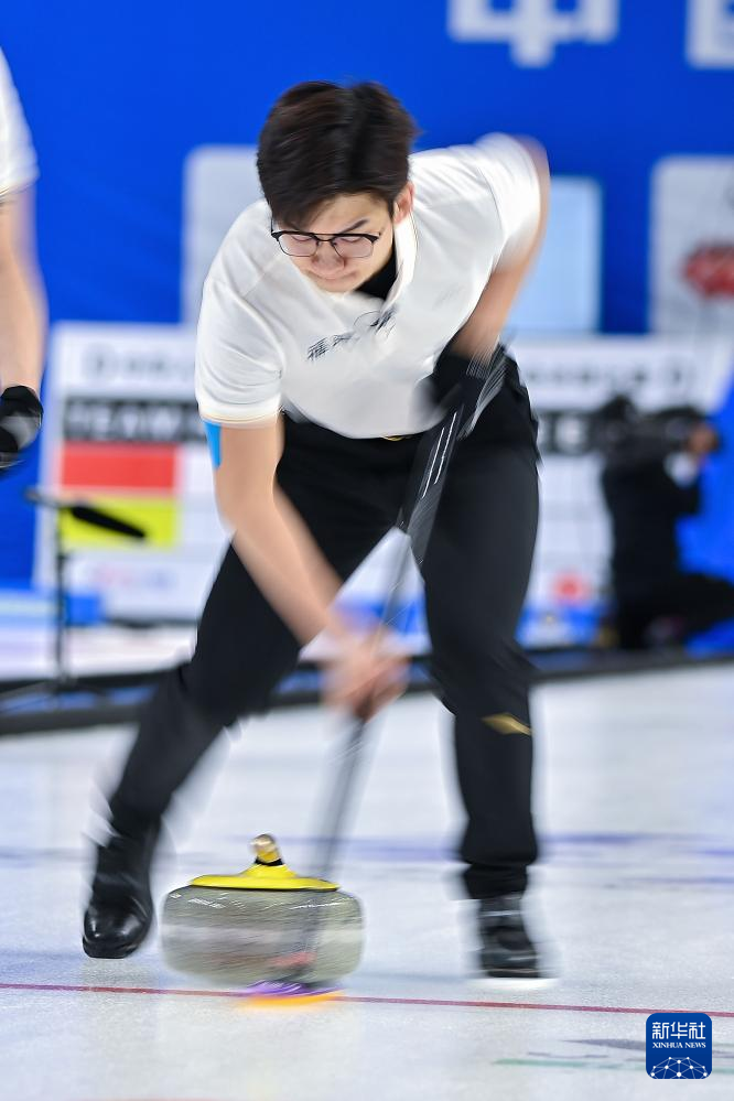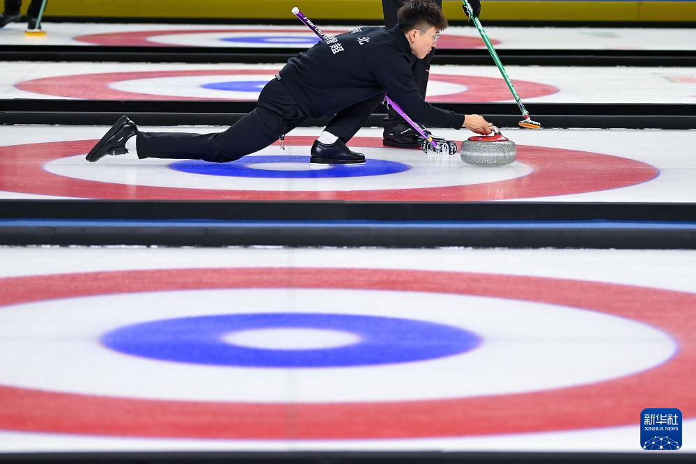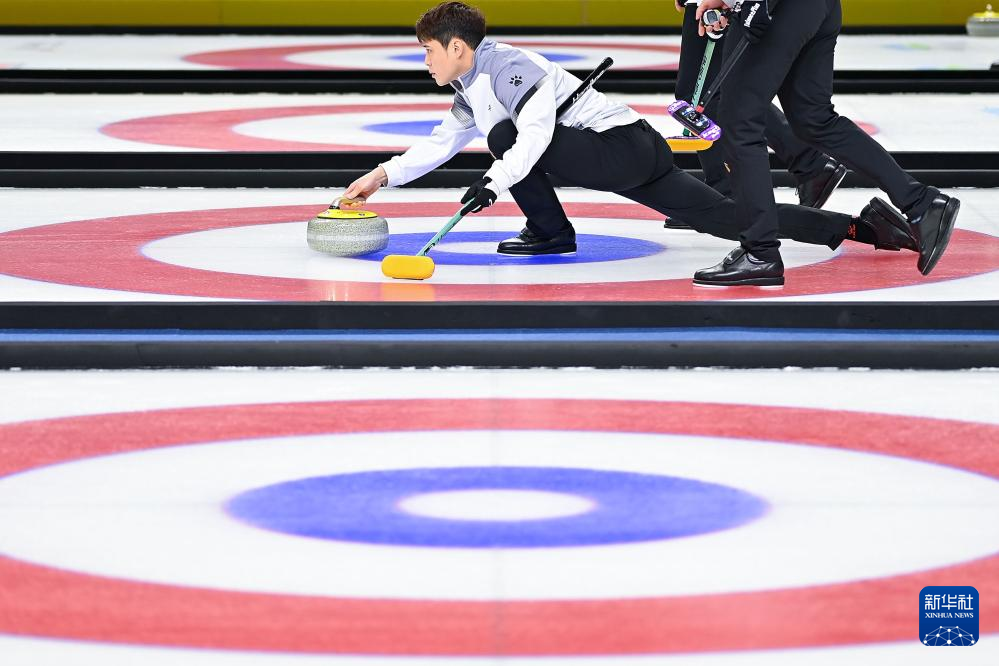 2月26日,河北队选手李智超在比赛中掷壶。新华社记者 杨晨光 摄