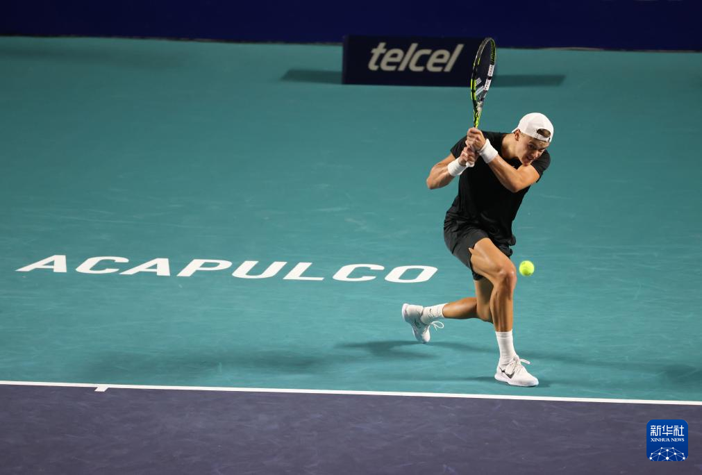 2月27日,美国选手迈克尔·莫在比赛中回球。新华社记者 李梦馨 摄