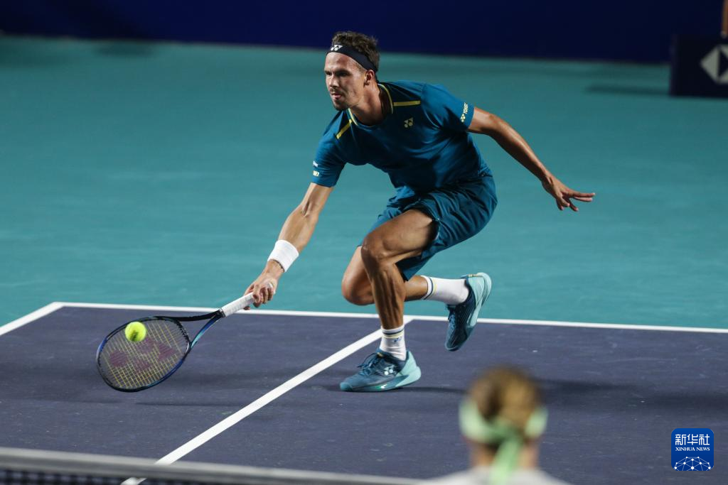 2月27日,德国选手兹韦列夫在比赛中回球。新华社发(弗朗西斯科·卡涅多摄)