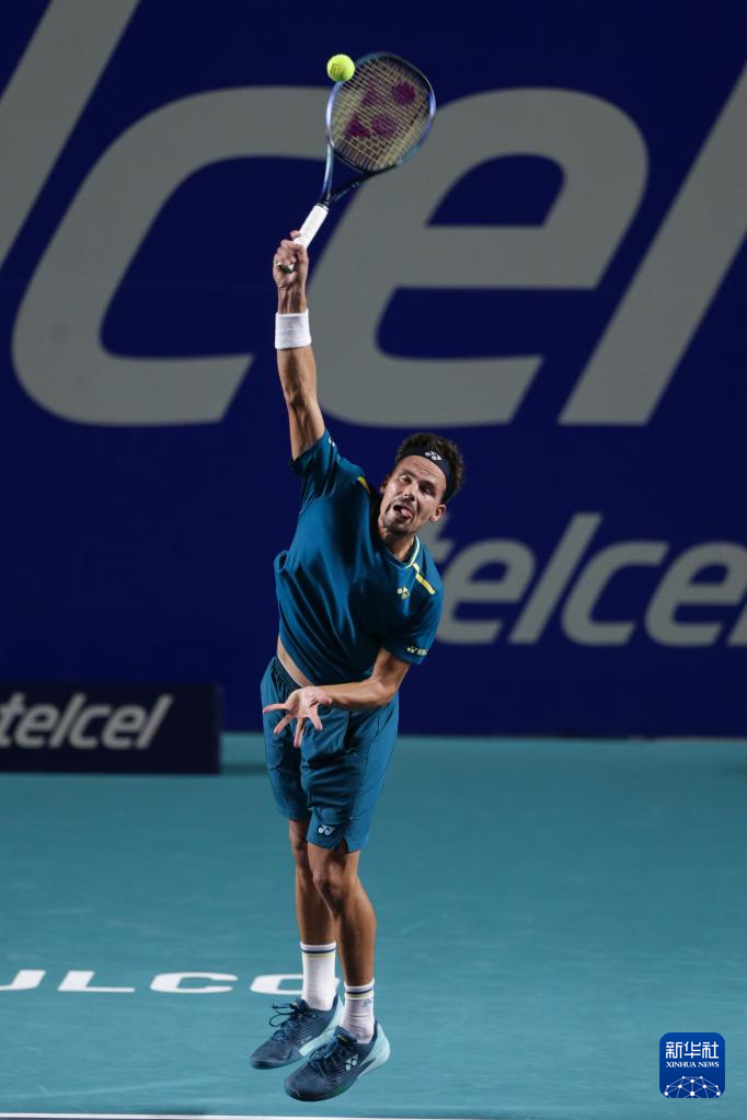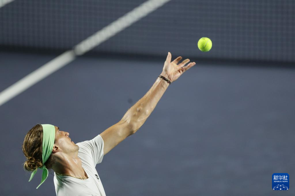2月27日,德国选手兹韦列夫在比赛中发球。新华社发(弗朗西斯科·卡涅多摄)