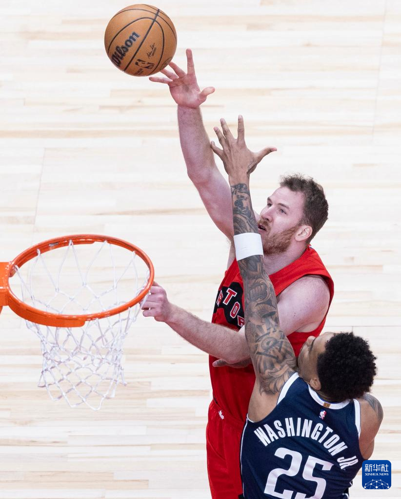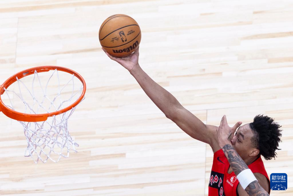 2月28日,猛龙队球员奥利尼克(上)在比赛中上篮。新华社发(邹峥摄)