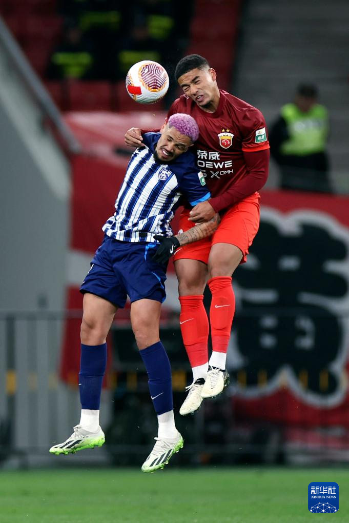 3月1日,上海海港队球员蒋光太(右)和武汉三镇队球员佩德罗·恩里克在比赛中争顶。