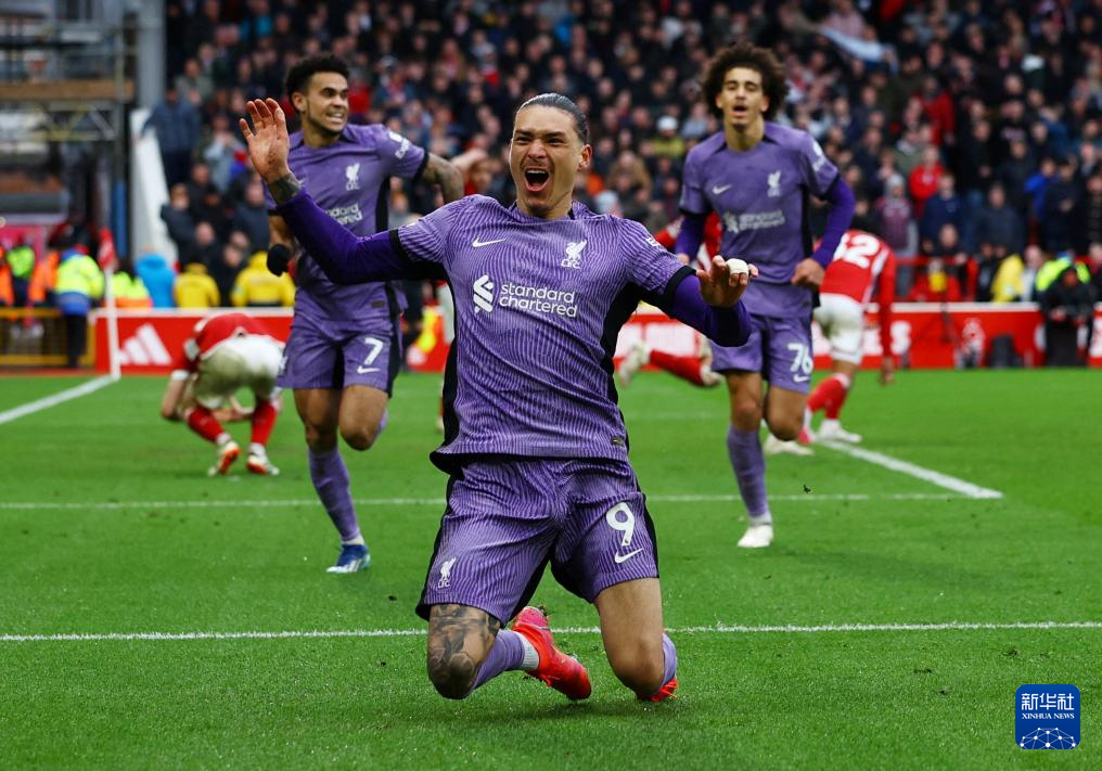 3月2日,利物浦队球员努涅斯(前)庆祝进球。新华社/路透