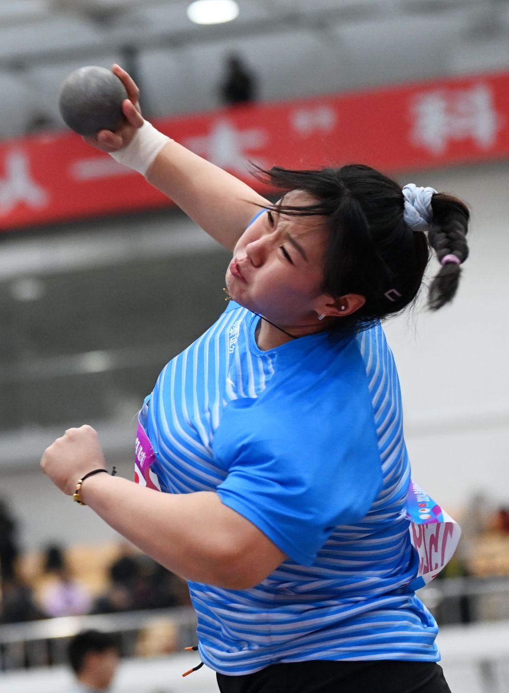 3月2日,山东队选手孙悦在女子铅球决赛中试投。新华社记者 李一博 摄