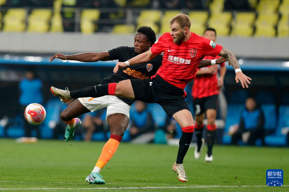 3月2日,成都蓉城队球员古尔芬克尔(右)在比赛中进攻。新华社记者 沈伯韩 摄
