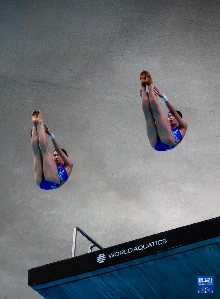 3月2日,陈芋汐(左)/全红婵在比赛中。新华社发(刘佳欢摄)