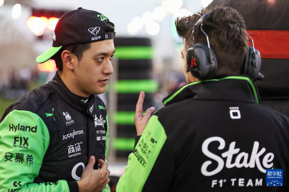 3月2日,索伯车队中国车手周冠宇(左)在比赛前。新华社发(钱俊摄)