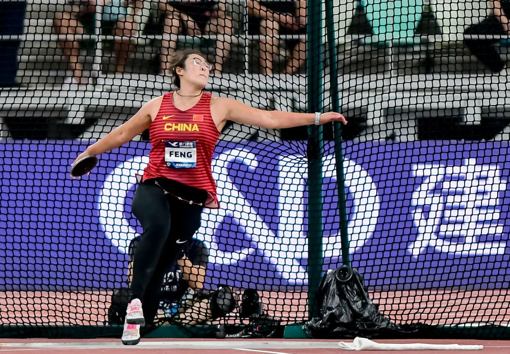 2023年9月2日,在福建省厦门市举行的2023年世界田联钻石联赛厦门站比赛中,中国选手冯彬以67米41的成绩获得女子铁饼冠军。新华社记者 魏培全 摄