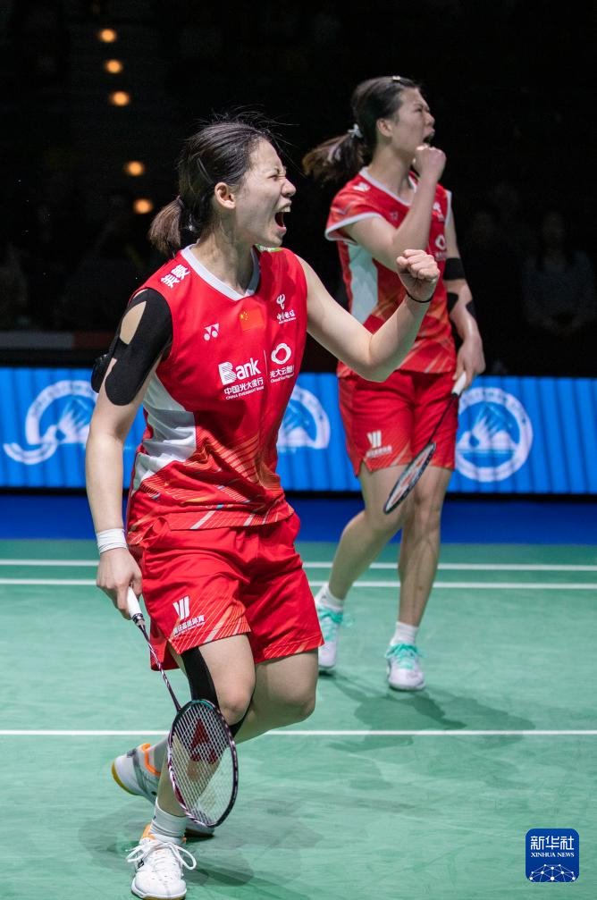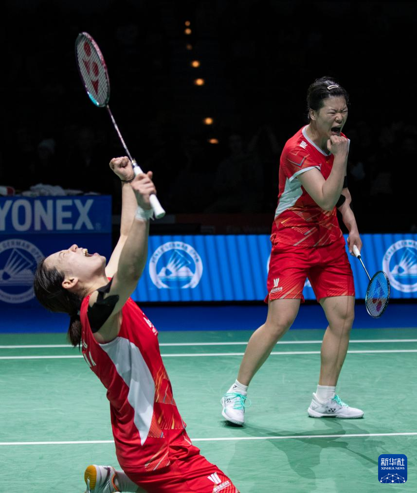 3月3日,李怡婧/罗徐敏(右)庆祝胜利。新华社记者 张帆 摄