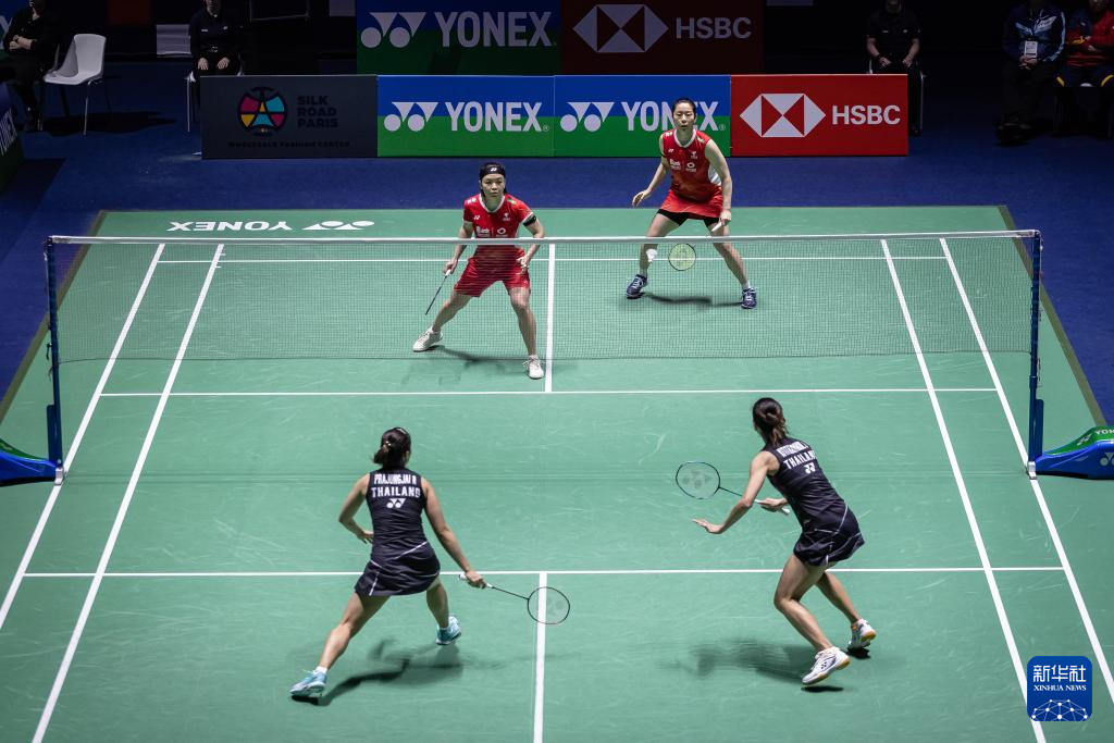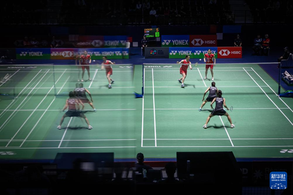 3月5日,陈清晨(上右一)/贾一凡(上右二)在比赛中。新华社发(奥雷利安·莫里萨尔摄)