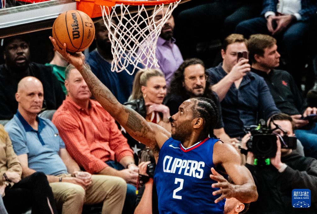 3月6日,快船队球员伦纳德(左)在比赛中上篮。新华社发(陈晨摄)