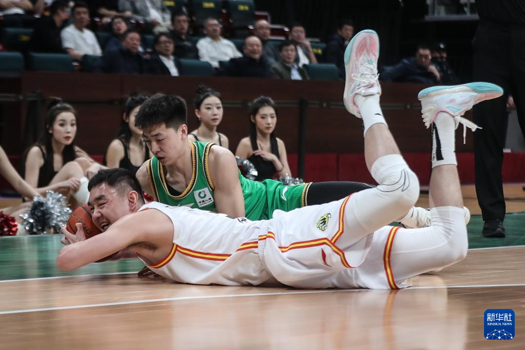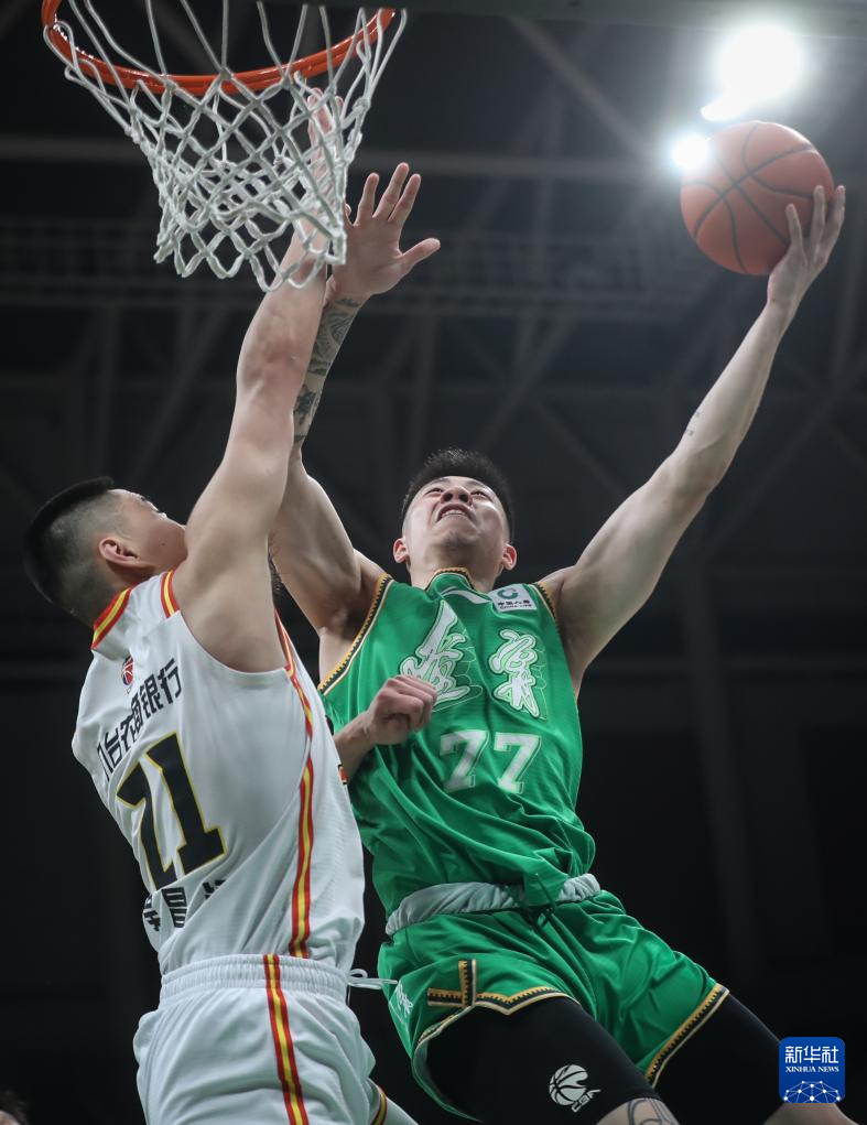 3月6日,吉林九台农商银行队球员代怀博(下)在比赛中拼抢。新华社记者 潘昱龙 摄