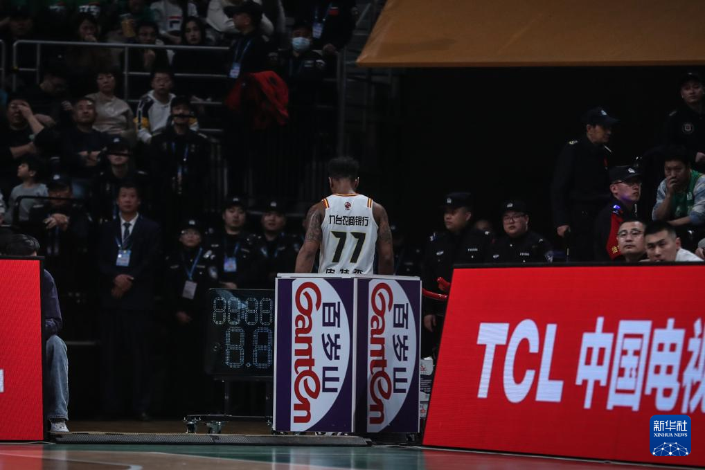 3月6日,吉林九台农商银行队球员皮特森在中场比赛结束前被替换下场,随后独自离开场地返回休息室。新华社记者 潘昱龙 摄