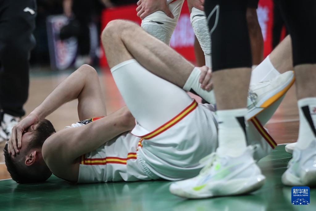 3月6日,吉林九台农商银行队球员拉科塞维奇在比赛中受伤,随后被替换下场。新华社记者 潘昱龙 摄