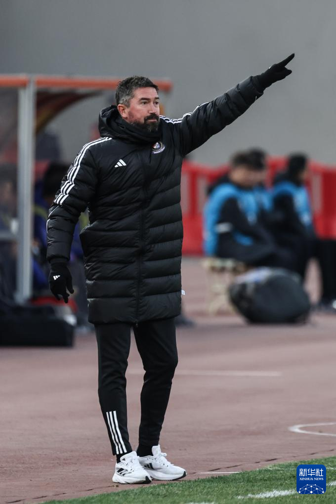 3月6日,山东泰山队主教练崔康熙(右)在比赛中指挥。新华社记者 朱峥 摄