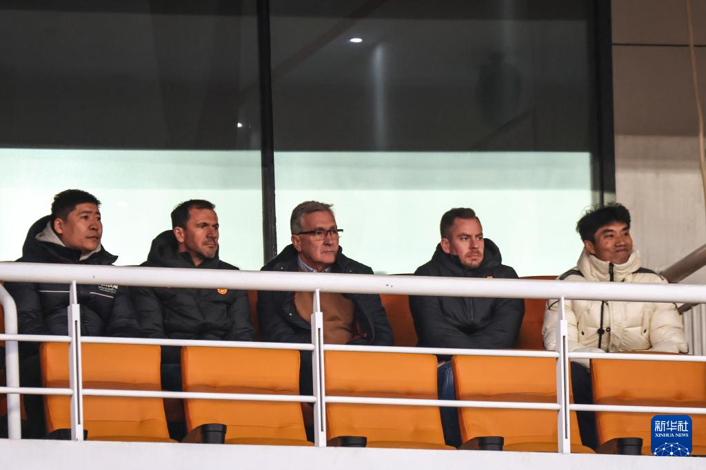 3月6日,中国国家男子足球队主教练伊万科维奇(中)在看台观看比赛。新华社记者 朱峥 摄