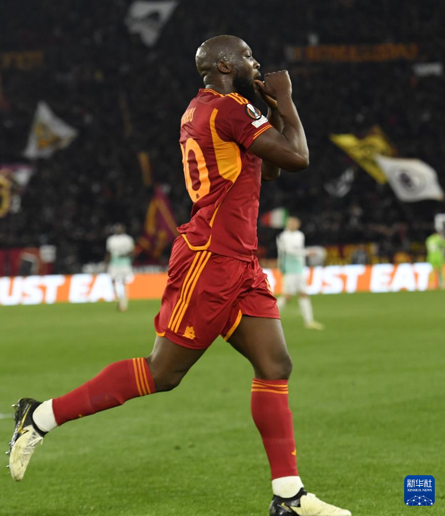 3月7日,罗马队球员卢卡库庆祝进球。新华社发(奥古斯托·卡萨索利摄)