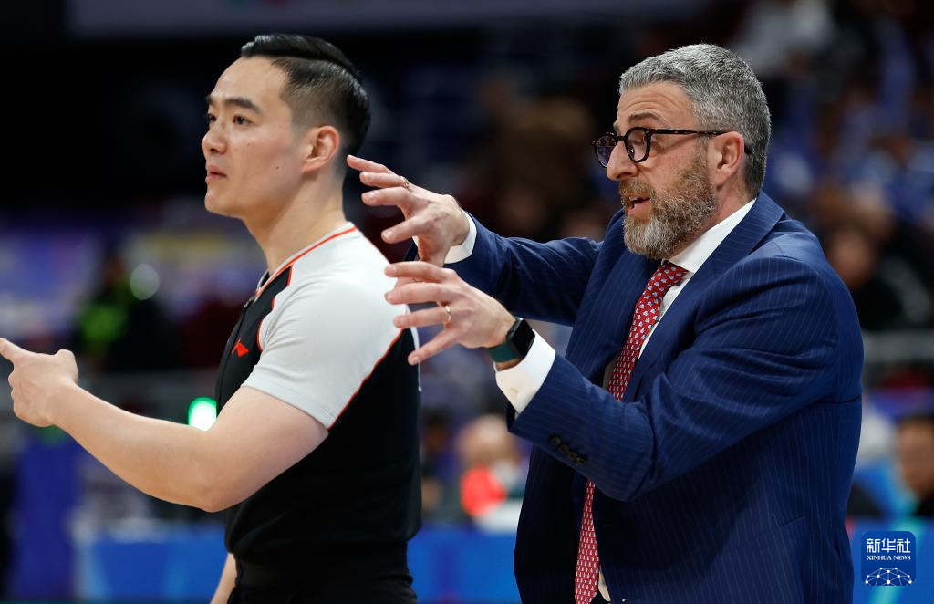 3月7日,北京北汽队主教练乔里欧·格里乔里(右)在场边指挥。新华社记者 王丽莉 摄