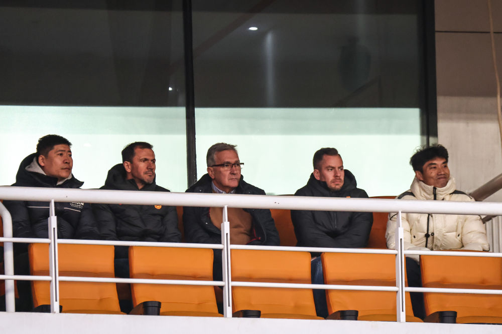 3月6日,中国国家男子足球队主教练伊万科维奇(中)在2023-2024赛季亚冠联赛四分之一决赛首回合现场观看比赛。新华社记者 朱峥 摄