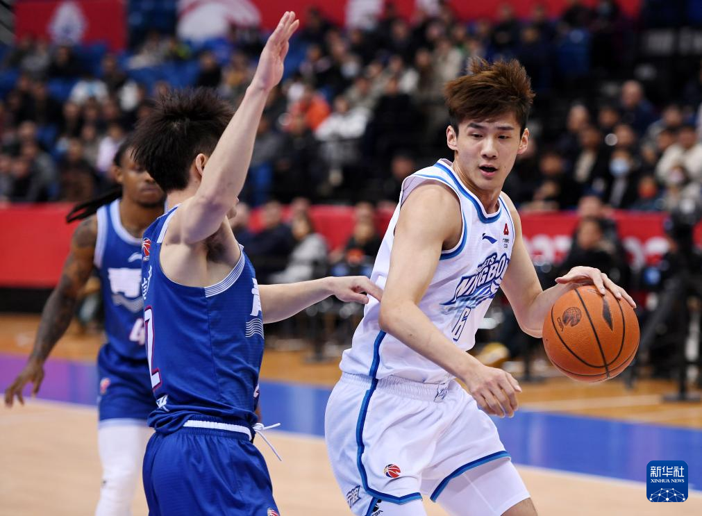 3月7日,宁波町渥队球员王俊杰(右)在比赛中持球进攻。新华社记者 李紫恒 摄