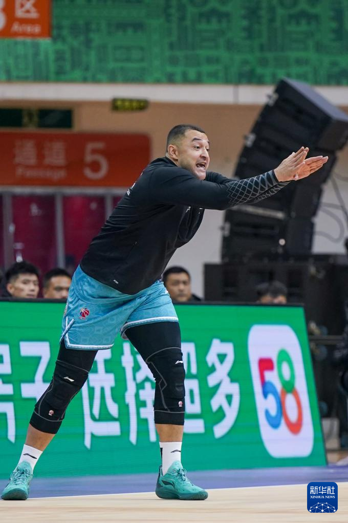 3月7日,南京头排苏酒队球员兼主教练西热力江在比赛中指挥。新华社记者 李博 摄
