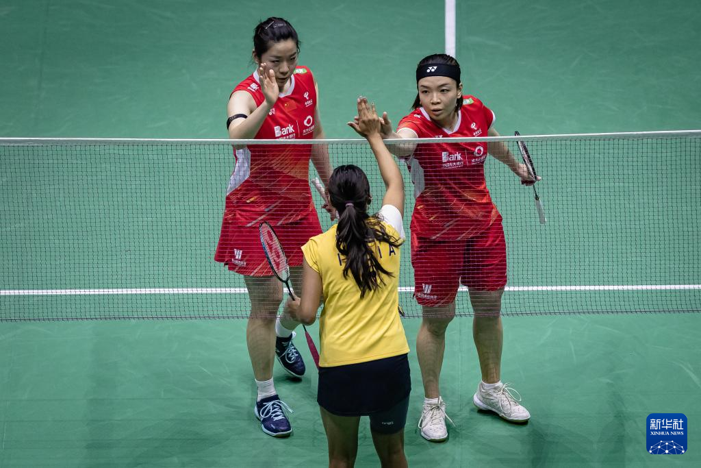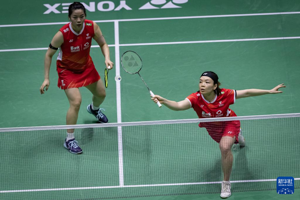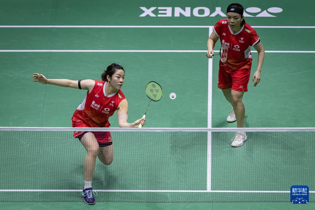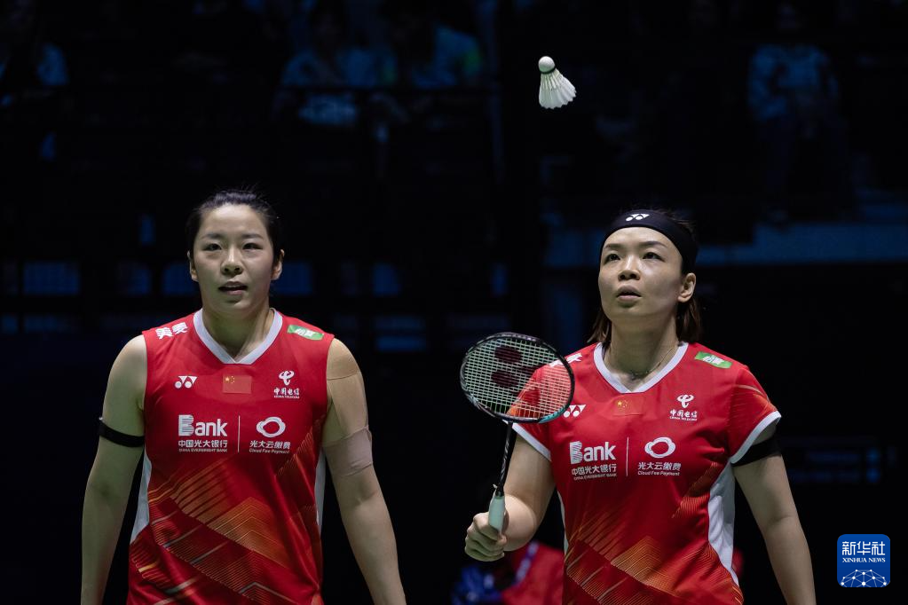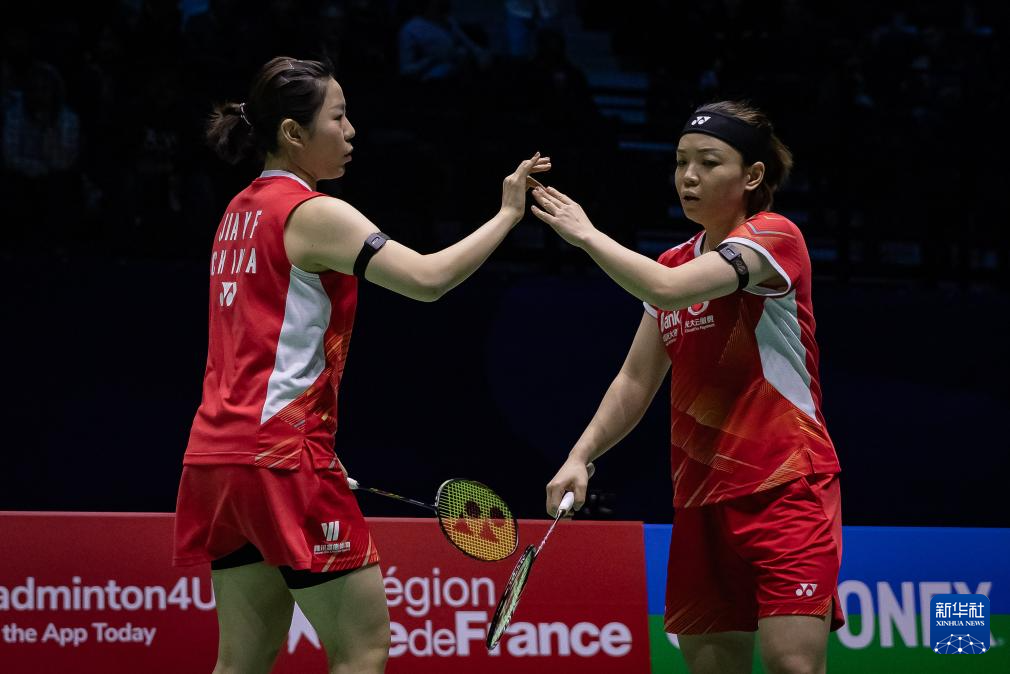 3月8日,陈清晨(右)/贾一凡在比赛中。新华社发(奥雷利安·莫里萨尔摄)