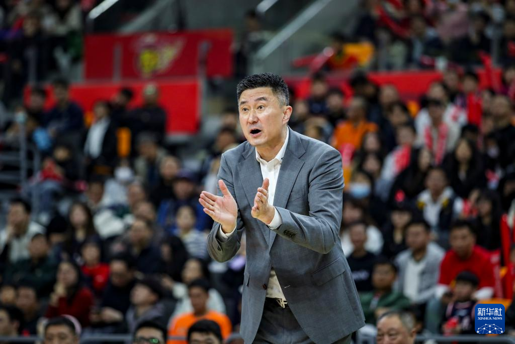 3月9日,广东华南虎队主教练杜锋在场边鼓励球员。