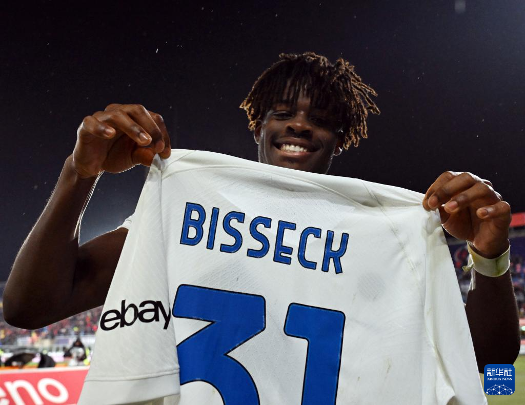 3月9日,国际米兰队球员比塞克在赛后庆祝胜利。