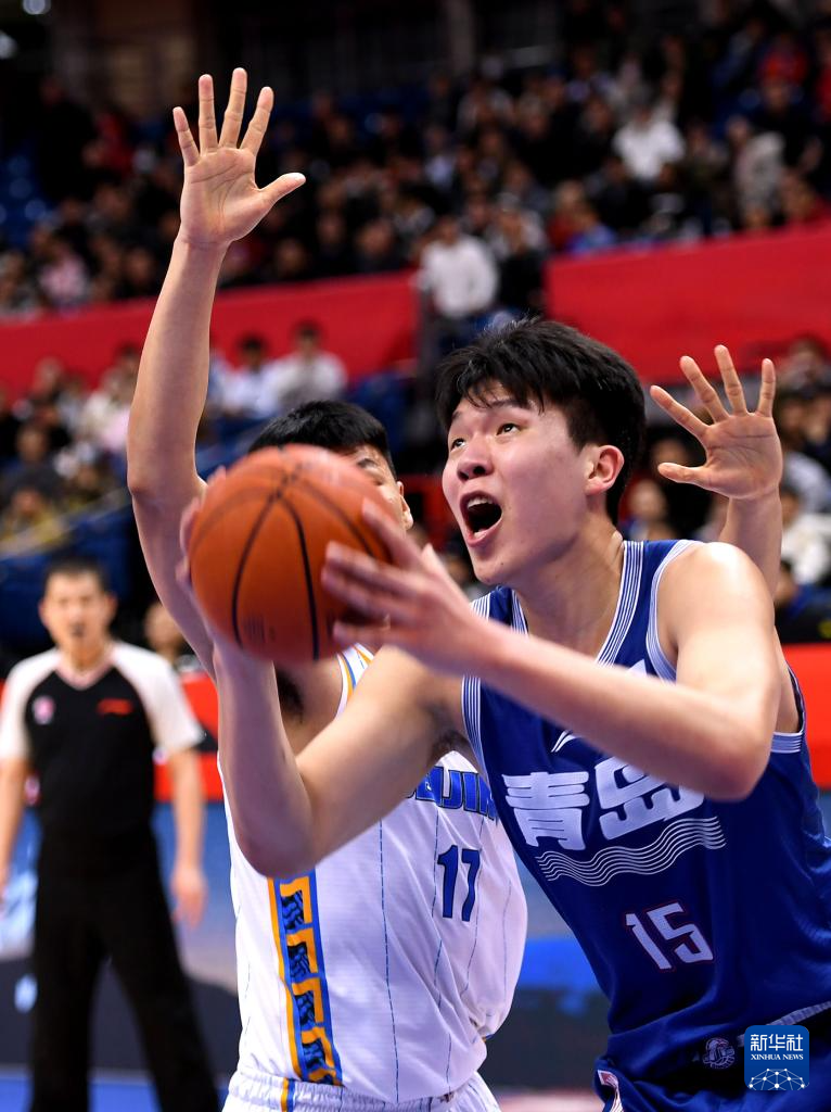 3月9日,青岛国信水产队球员段昂君(右)防守北京北汽队球员利夫。