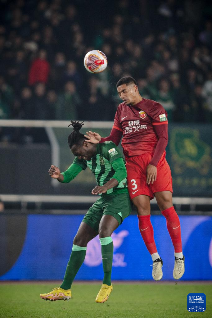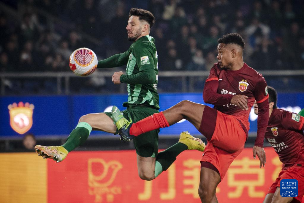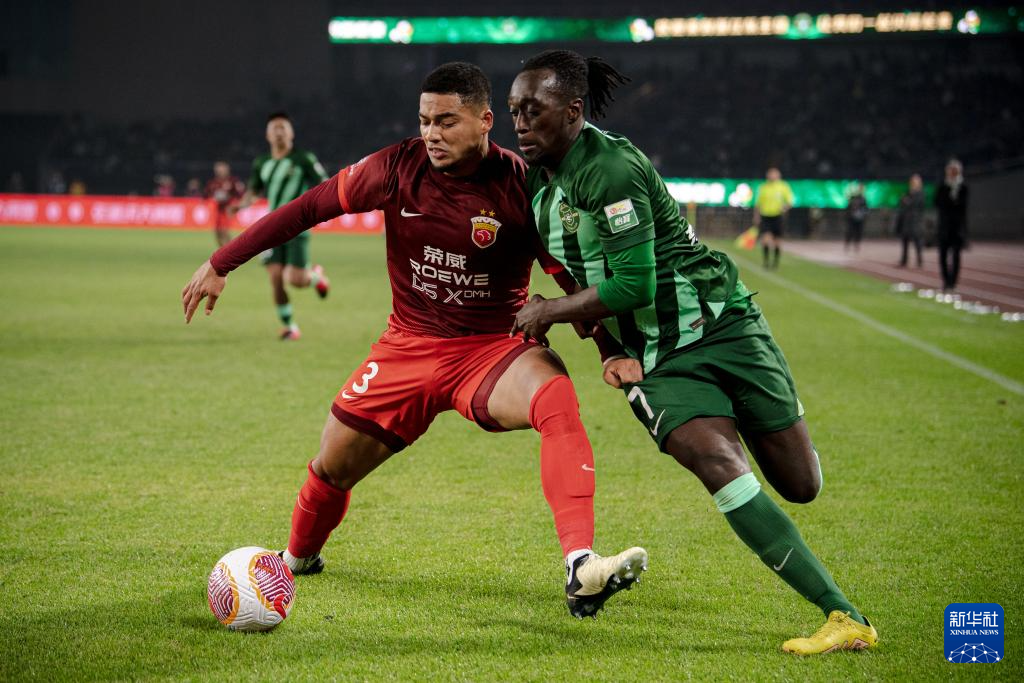 3月9日,上海海港队球员马修斯·尤萨(右)在比赛中解围。