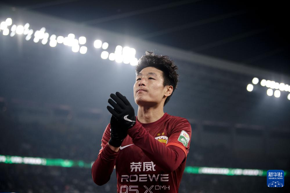 3月9日,上海海港队球员武磊在赛后向球迷致意。