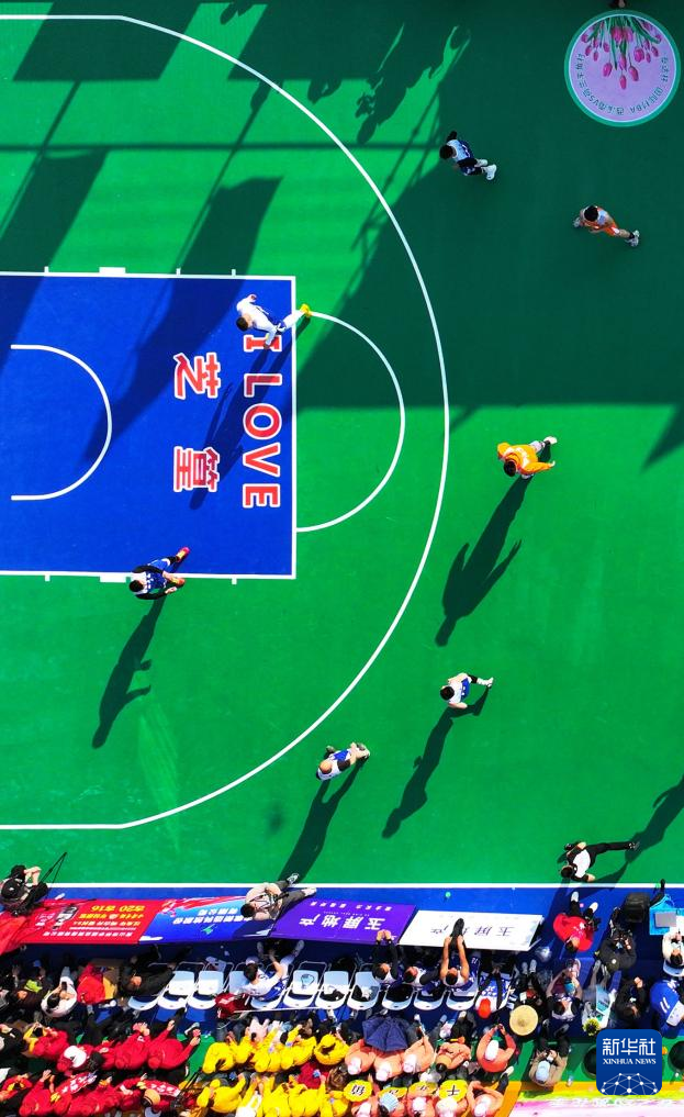 这是3月10日拍摄的篮球比赛现场(无人机照片)。新华社记者 杜宇 摄