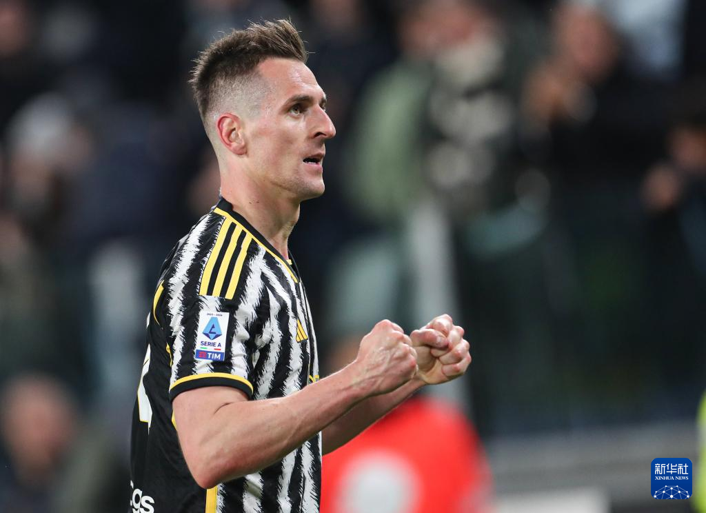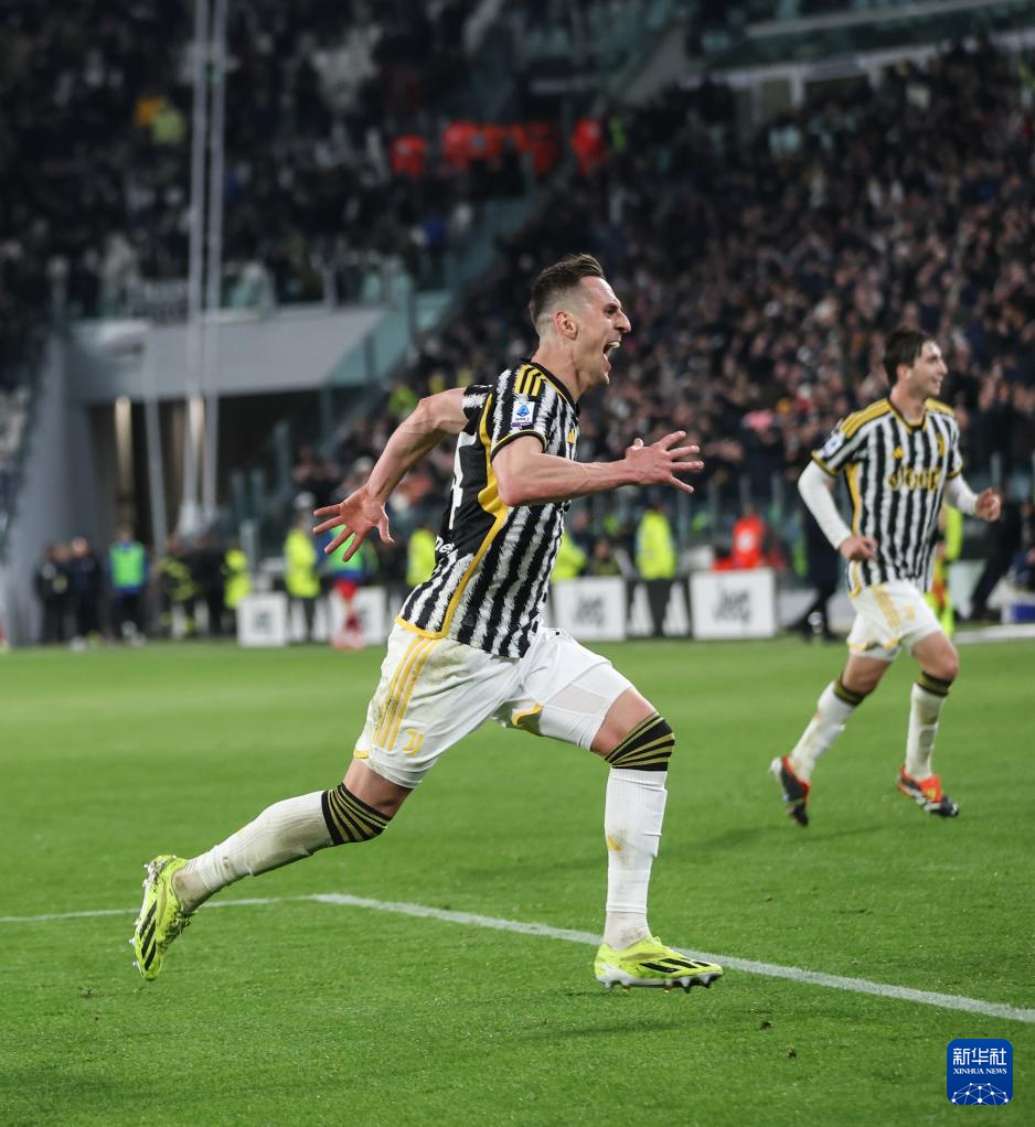 3月10日,尤文图斯队球员米利克庆祝进球。新华社记者 李京 摄