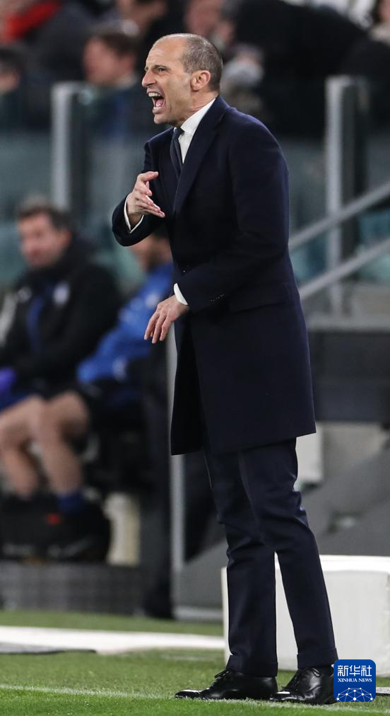 3月10日,尤文图斯队主教练阿莱格里在赛场边指挥。新华社记者 李京 摄