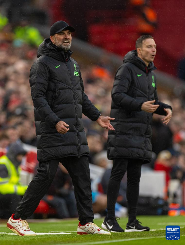 3月10日,利物浦队主教练克洛普(左)在场边观战。新华社发