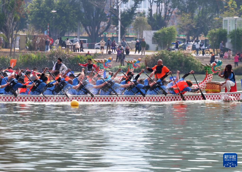 3月10日,参赛队伍在晋安湖龙舟竞速赛比赛中。新华社记者 林善传 摄
