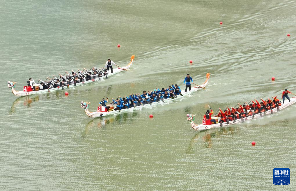 这是3月10日拍摄的晋安湖龙舟竞速赛比赛现场(无人机照片)。新华社记者 林善传 摄