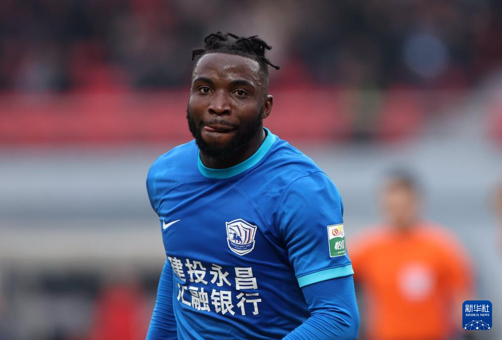 3月10日,沧州雄狮队球员奥斯卡在进球后庆祝。新华社发(周洋摄)