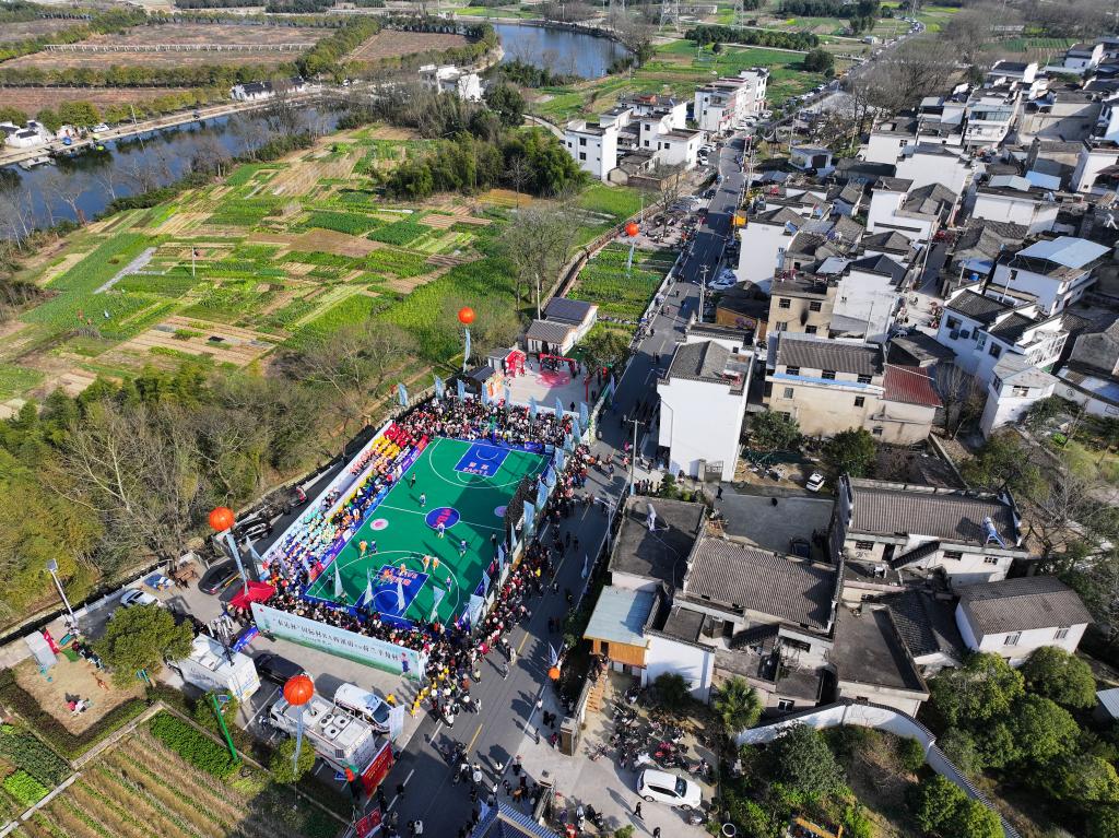 新华社合肥3月10日电(记者周畅、赵金正)春风渐暖,赛事火热。10日下午,在安徽省黄山市徽州区西溪南镇西溪南村,西溪南队和来自荷兰的羊角村队,在皖南古村落里为现场约千名观众献上一场国际篮球赛。
