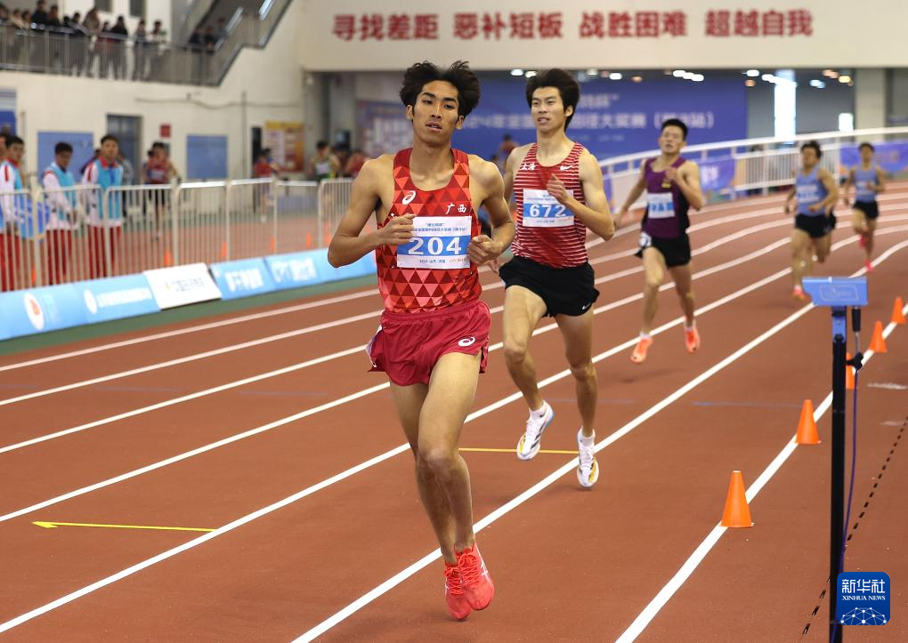 3月13日,广西队选手刘德助(右三)在男子800米决赛中。最终,他以1分50秒84的成绩获得冠军。新华社记者 廖宇杰 摄