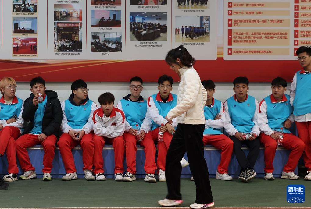3月13日,湖南队选手夏思凝(中)在女子60米栏预赛前做准备。最终,她以8秒35的成绩晋级决赛。新华社记者 廖宇杰 摄