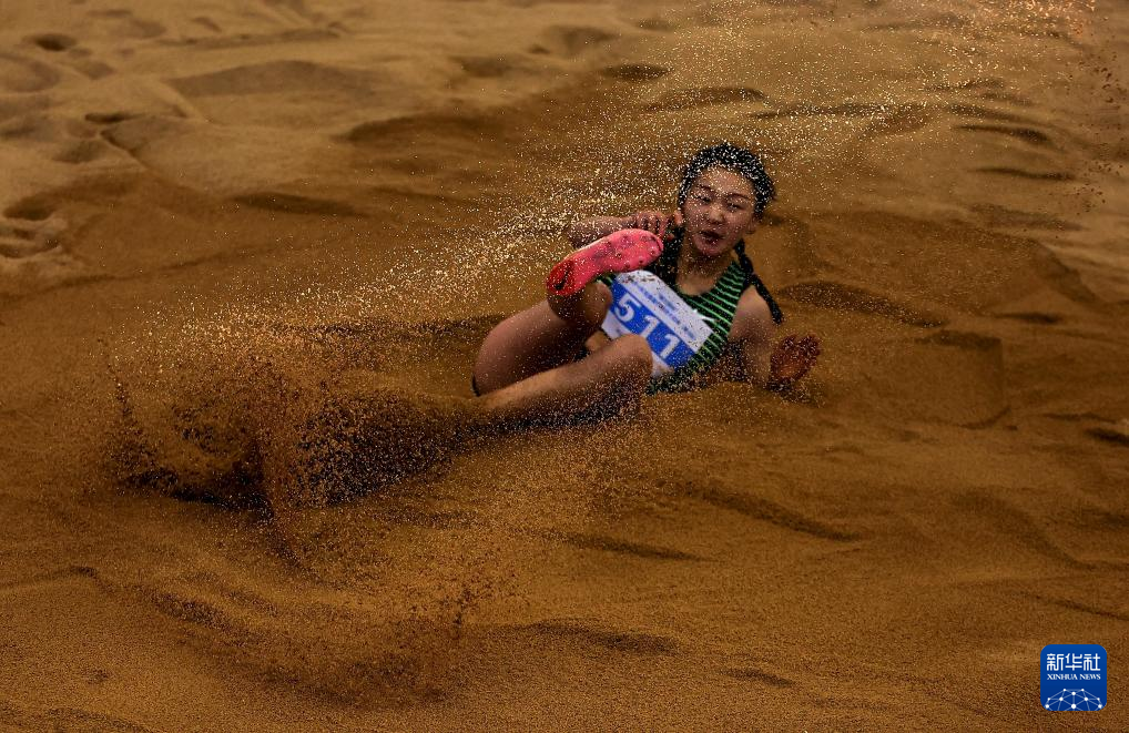 3月12日,江苏选手张俊俊在女子跳远A组决赛中。她以5米89的成绩获得本组第八名。新华社记者 廖宇杰 摄