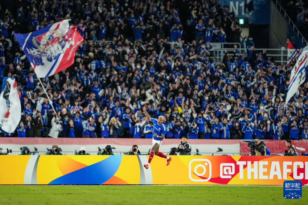 3月13日,横滨水手队球员安德森·洛佩斯在比赛中庆祝进球。新华社记者 张笑宇 摄