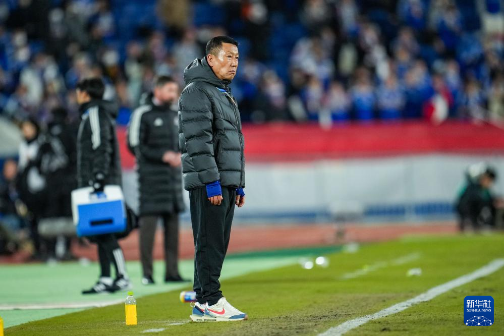 3月13日,山东泰山队主教练崔康熙在比赛中。新华社记者 张笑宇 摄