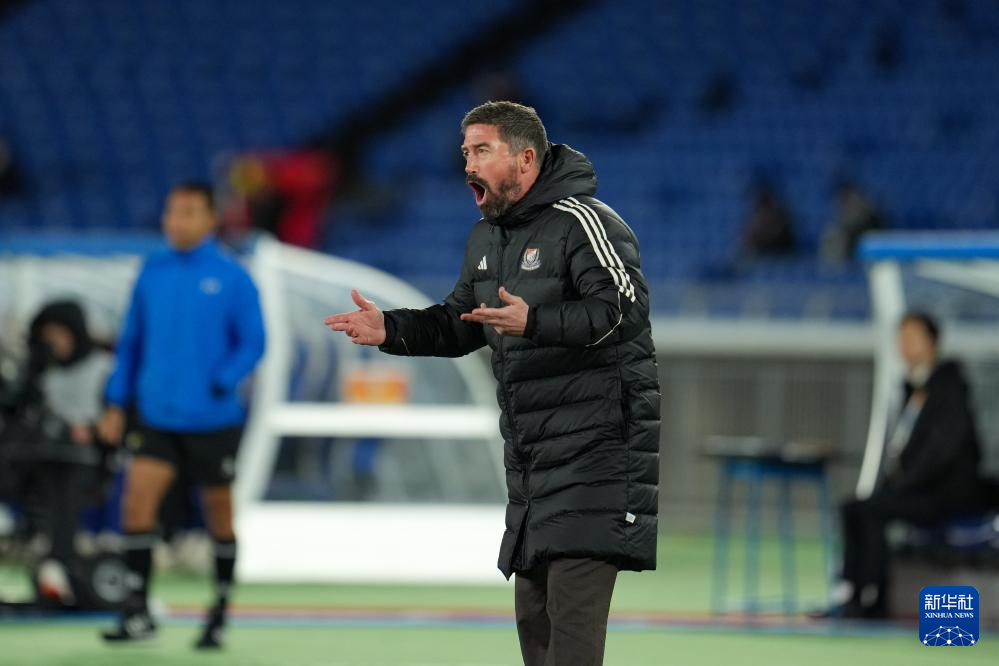 3月13日,横滨水手队主教练科威尔在比赛中指挥。新华社记者 张笑宇 摄